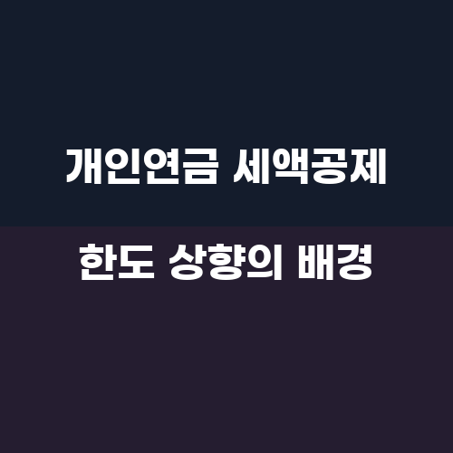 연금저축 세액공제 한도의 상향 조정은 여러 가지 배경에서 비롯되었습니다. 첫째, 우리 사회의 고령화가 빠르게 진행됨에 따라 개인의 노후 준비가 더욱 중요해졌습니다. 정부는 국민들이 노후에 안정적인 생활을 영위할 수 있도록 다양한 정책을 추진하고 있으며, 연금저축의 활성화는 그 중 하나입니다.