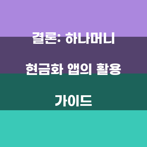 결론적으로, 하나머니 현금화 앱은 소비자들에게 실질적인 혜택을 제공하는 유용한 도구입니다. 소비자들은 이 앱을 통해 소소한 소비를 줄이고, 추가적인 수익을 얻을 수 있는 기회를 가질 수 있습니다. 따라서, 하나머니 앱을 다운로드하고 적극적으로 활용해보는 것을 추천합니다.